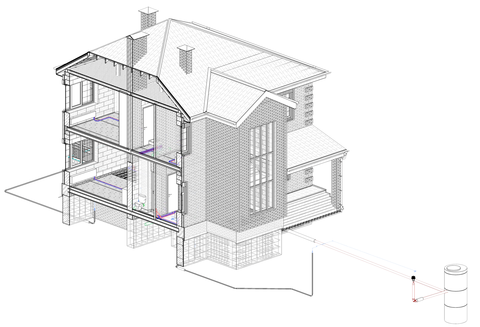 Так как проектирование осуществляется в специальной программе, коллизии (ошибки) в наложении коммуникаций друг на друга полностью исключены.